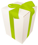 BIELONE PUDEŁKO KARTONOWE - z zieloną tasiemką - 15x15x20cm