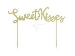 Topper na tort - Sweet Kisses - Złoty - Brokatowy - 16.5 cm