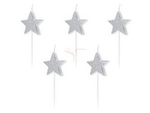 Świeczki urodzinowe Gwiazdki - srebrne - 3.5 cm - 5 szt.