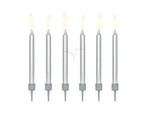 Świeczki urodzinowe - Gładkie - Srebrne - 6 cm - 6 sztuk